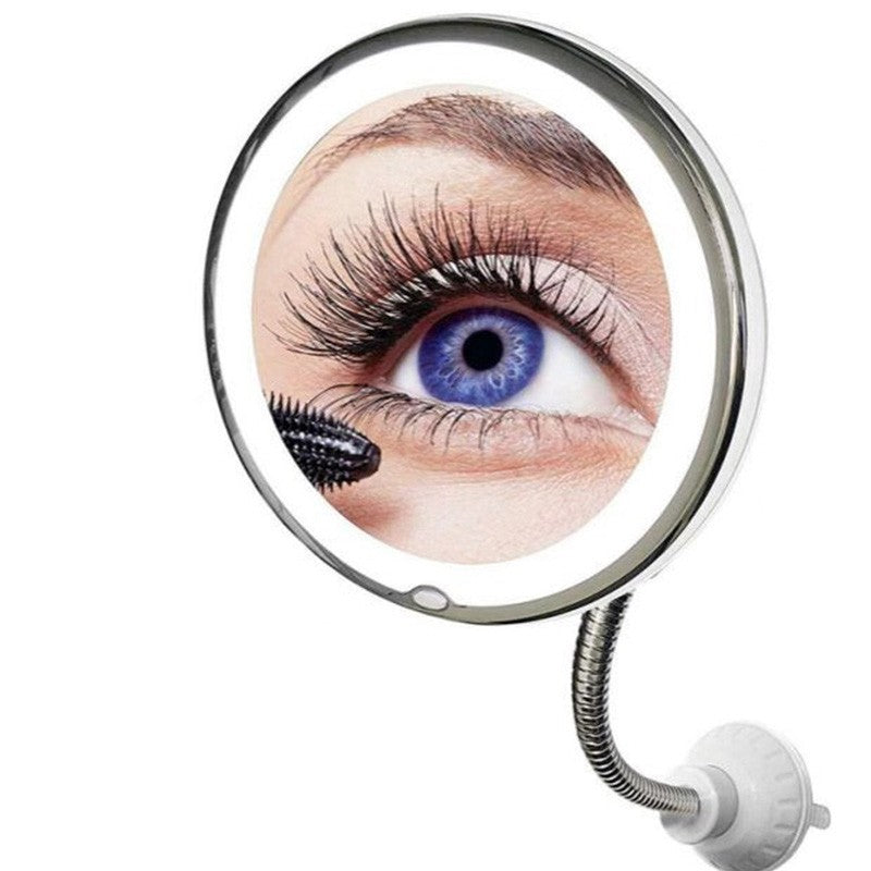 Espelho de Maquiagem com LED e Aumento 10x – Flexível e Portátil